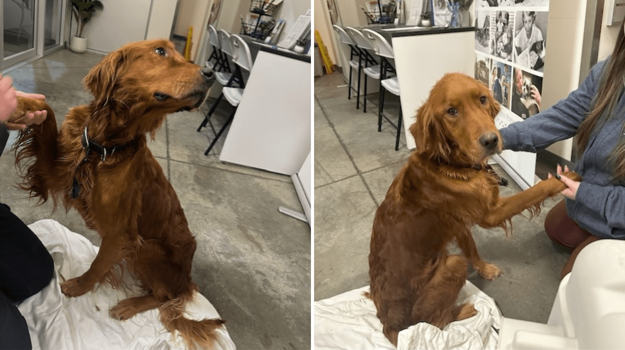 It can be hard to believe that Ginger is such a sweet, calm and loving dog considering everything in her past. As you’ll see from many of these photos, all she wants is for someone to hold her paw. A gesture of gratitude? Maybe. An ask for comfort? Most definitely.