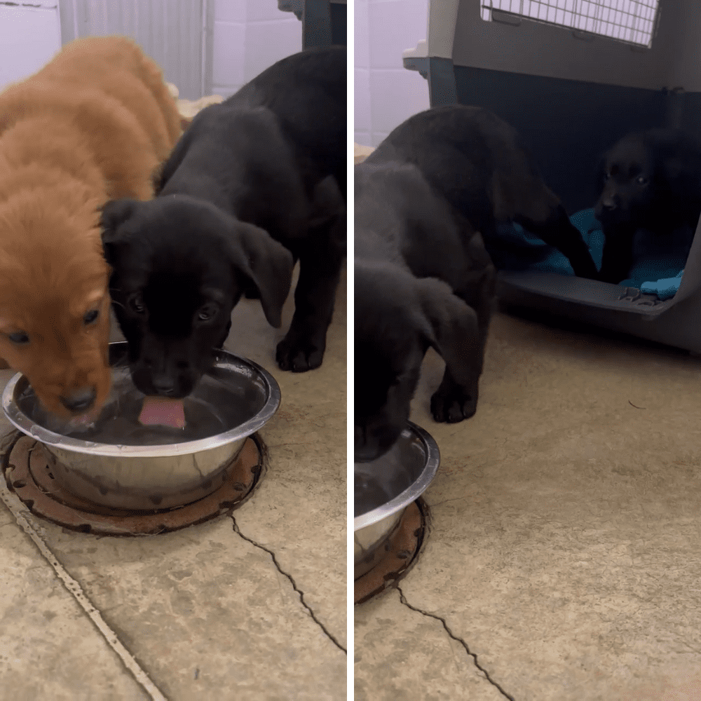 As you can see, these little ones are timid and often retreat to the comfort of their crate to feel safe. It’s no surprise given their harsh life so far, but we look forward to teaching them how to trust and be curious about the world around them. Your kindness and love can help them grow into confident, playful pups.