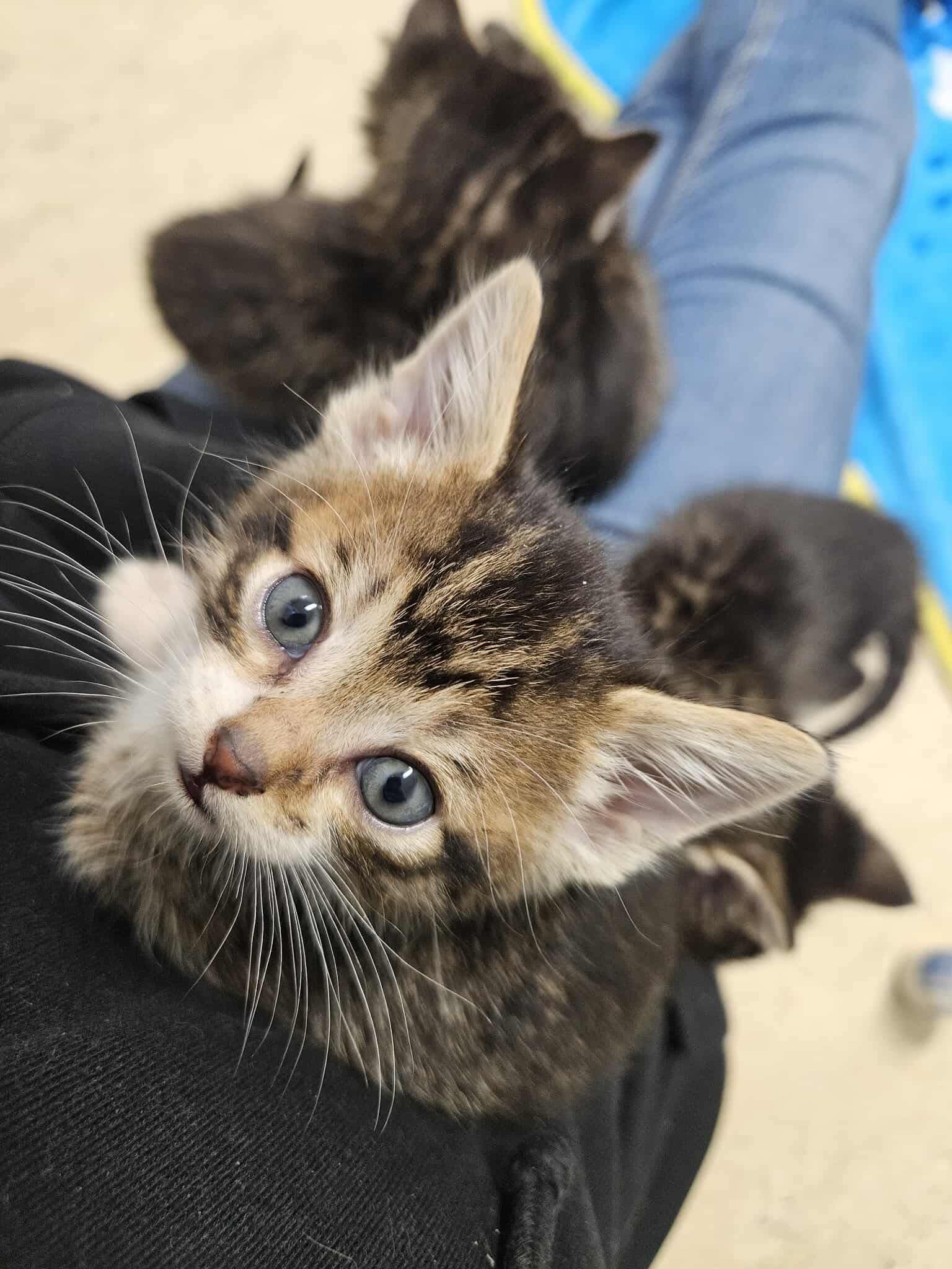 This adorable crew is growing up so fast! They’ve been placed into an experienced foster home to give them the attention they need, and more space for kitten zoomies. One minute they’re in a deep slumber, the next they’re sprinting laps around the room. These tiny purr machines can often be found “hunting” each other’s tails, chasing a piece of lint or sleeping while their little bodies grow.
