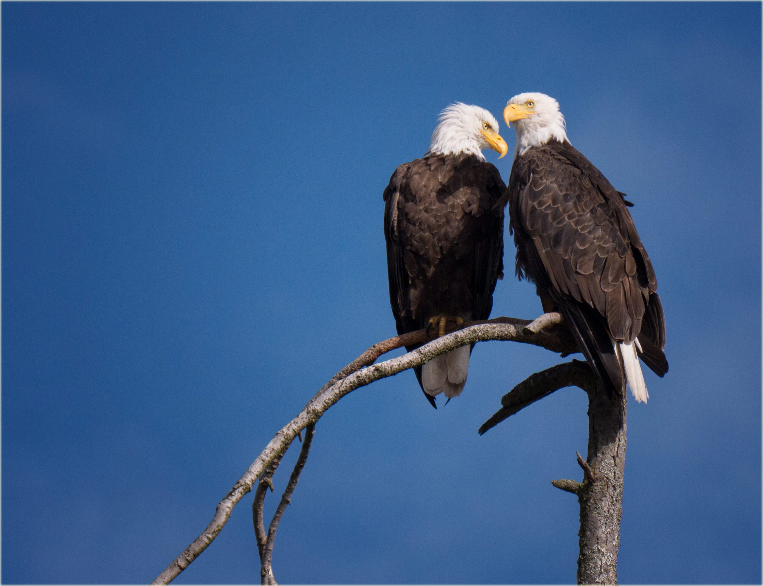 Bald eagles also mate for life, which is a long time for birds who live up to 20 years or more! These are birds who grow old together – returning to the same nest site year after year. Avid birdwatchers often know the local pairs of eagles, and look forward to their return each year.