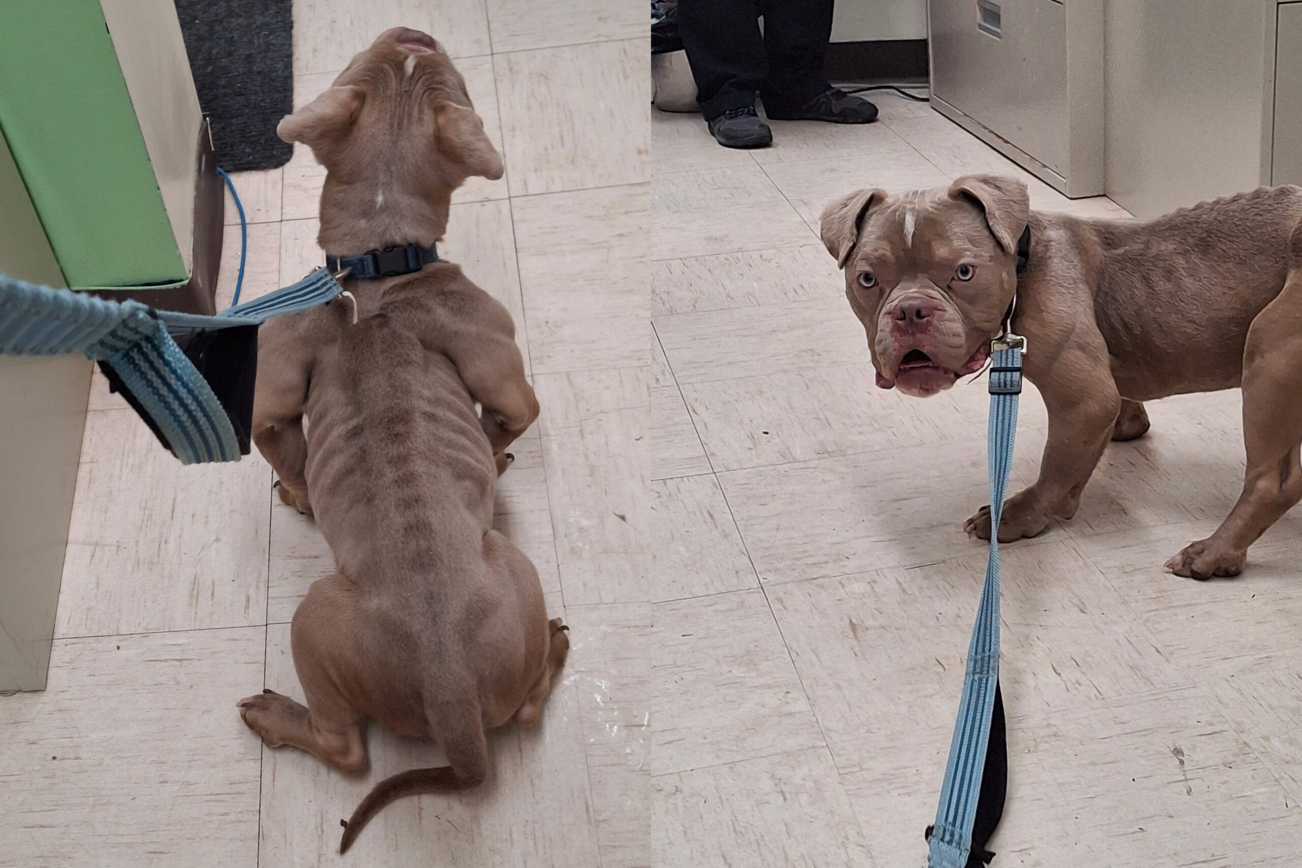 In April, an emaciated pit bull, English bulldog mix was found by a compassionate jogger during their run near McNair Secondary School in Richmond. The dog was skin and bones. After waiting to see if an owner was nearby, and finding no one, the jogger was able to get the dog into his car and bring him to the BC SPCA Richmond. Arnie, as he was named by animal centre staff, was placed with a BC SPCA foster and began several months of care including a veterinarian supervised re-feeding plan to help him gain weight.