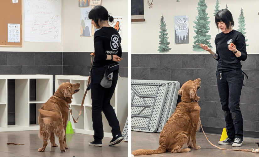 Just because your dog is considered an adult by age, does not mean they are in graduate school for certain behaviours. Everything that dogs learn can be broken down in skill levels from Kindergarten to PhD, for example, but not by age necessarily. It is all about practice and consistency. We have to consider not only the amount of practice they have had with trained behaviours, but what skill level they are at in comparison to the level of distraction around them. Regardless of age, we want to always start training in the least distracting setting possible, and then gradually add in real life distractions. This helps your dog focus on us, sets them up for success and makes the training process less stressful for them.