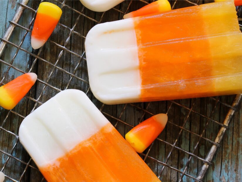 All the cheery colour of candy corn without the sugar — you and your pup will love these festive frozen treats!
