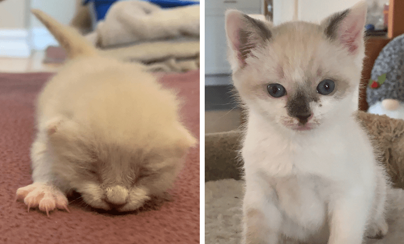 Paille says they are cautiously optimistic about the kitten’s health. “This kitten has a fighting spirit. The foster says he is eating well and is gaining weight.”