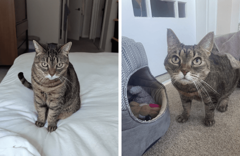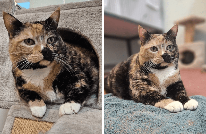Chleo is the sweetest girl! Understandably, she was initially very sad and shut down in shelter after her lifelong owner had passed away. But with some time in foster, her charming personality has come out. She’s now friendly and a polite and gentle companion! She has a small, growly meow and enjoys talking to you. She loves pets and brushes and will climb under the covers to cuddle. She’s still playful and energetic when going about her kitty day and even gets occasional zoomies. This resilient kitty still has so much love to give! Chleo has had bloodwork and a check up and is ready to find her forever home. She would do well in a quiet, indoor-only space. If you’re looking for a cute and loving little friend, Chleo could be for you!
