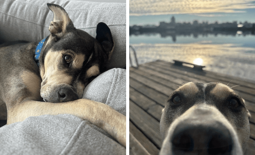 Sarah adds Siren loves to play with her toy pelican and gets the zoomies often. “She gets so excited when she sees us returning home. She stands in the window and when you come in the front door, she just covers you with licks.”