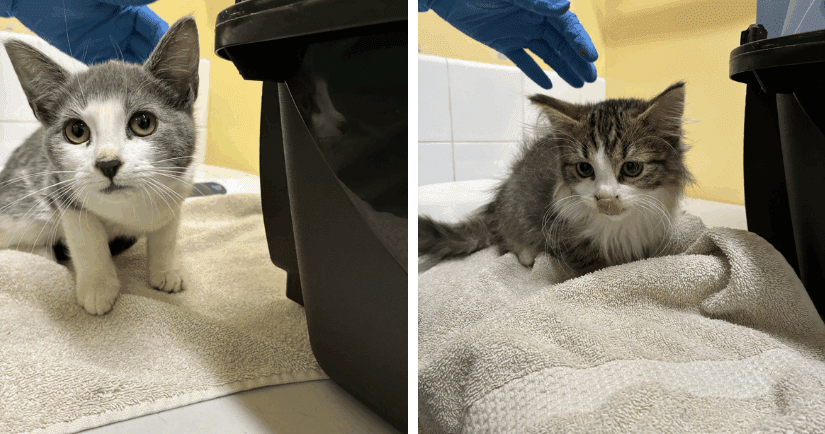 The plastic containers were taped shut and there were multiple cats in each container. “The cats were left outside of our main gate, as the animal centre was closed at the time. Our staff and volunteers were working at the back of the animal centre and could not see the parking lot when they were dropped off,” says Donnelly. “They were discovered about 20 minutes later and staff immediately started moving the cats from the plastic containers into proper pet carriers. As we were moving them, we realized that sadly one of the cats was deceased.”