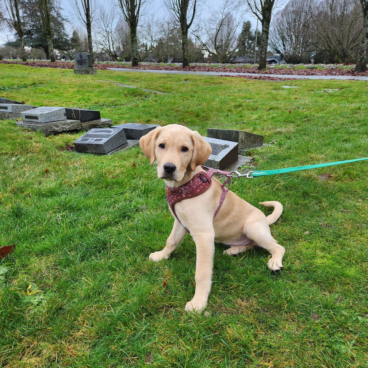 We are happy to share that Bagel is thriving! Now renamed Finnigan by his new parents, this pup’s story took a happy turn when he was placed with a foster-to-adopt family of lifelong Labrador lovers who already had experience with the breed and an active lifestyle. Their home near the coast provides him with plenty of hiking and outdoor time — an ideal environment for an energetic young lab.